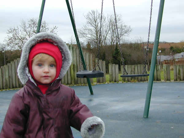 Just about every day, we visit the playground just in front of our house. This is my favorite part--the swings!